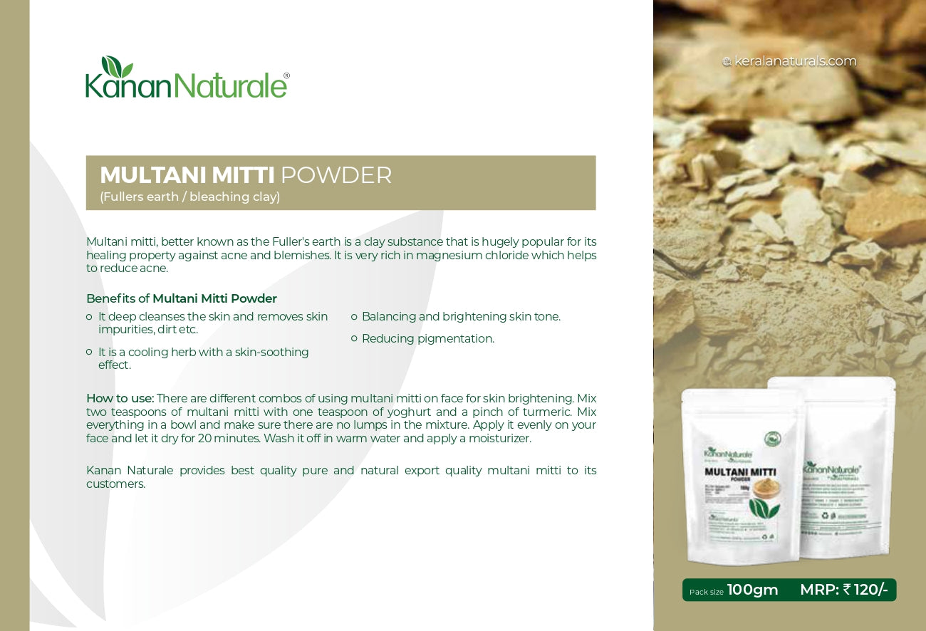 - Kerala Naturals offers the best Multani Mitti ( Fullers Earth ) for face masks.
